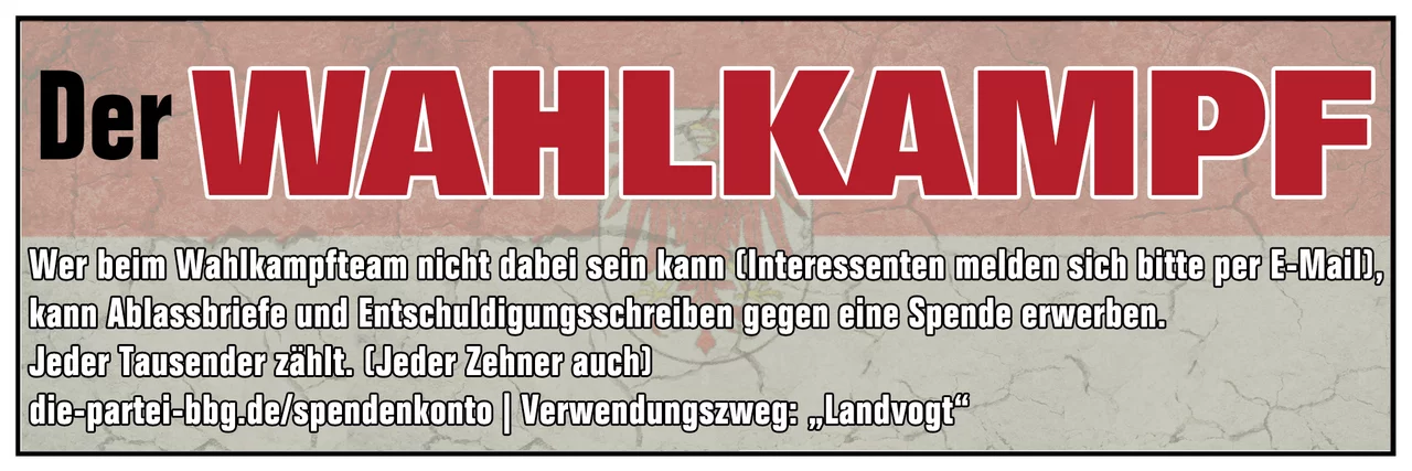 (die-partei-bbg.de/spendenkonto | Verwendungszweg: „Landvogt“)